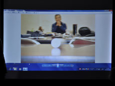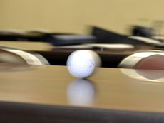 Aの後幕を体験するため、講師が持参されたゴルフボールを被写体にしてボールの転がりを後幕で撮影する体験を行った。自分のカメラに後幕設定をするのも取説と首っ引きで何とか設定を済ませ撮影するが、なかなか思ったような後幕効果が撮影できない。そこでシャッタースピード1/4 絞り5.6程度に再調整してやっと何とか後幕効果が出た写真撮影が出来た。