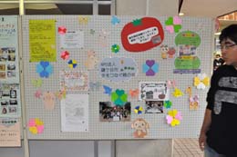 5階では<福祉と体験コーナー>で、身体障がい者福祉センターの障がい者の方たちが作成された作品展示や活動紹介、手話サークルによる展示とミニ手話教室が開催された。
